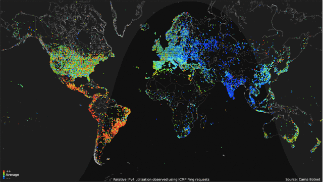 Seo gif a chaidh a chruthachadh le botnet ana-mhòr mì-laghail a thaisbeineas dàta mu chleachdadh an eadar-lìn rè aon latha. Mar sin, tha an gif seo na dhealbh dhen eadar-lìon ann an seagh. Seo an inntinn domhanta lìonrach — nach eil i àlainn?