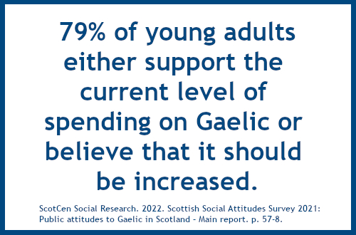 ScotCen Social Research. 2022. Scottish Social Attitudes Survey 2021: Public attitudes to Gaelic in Scotland – Main report. http://www.gaidhlig.scot/en/news/SSAS/